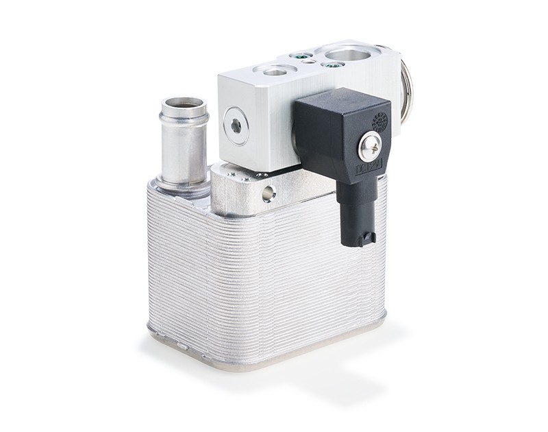 MAHLE Chiller sind besondere Wärmetauscher, die sowohl mit dem Kühlmittel- als auch dem Kältemittelkreislauf verbunden sind. Dadurch kann bei hohen Temperaturen oder großen Lasten das Kältemittel der Klimaanlage zusätzlich zur Kühlung des Kühlmittels von Antriebsbatterie, Leistungselektronik und E-Motoren eingesetzt werden, um die Komponenten in einem optimalen Temperaturbereich zu halten.