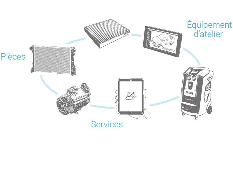 Les équipements d’atelier de MAHLE Service Solutions intègrent toutes nos connaissances sur les produits et les ateliers. Des outils innovants pour le diagnostic des véhicules aux stations de charge et d’entretien de climatisation et aux systèmes d’étalonnage des systèmes d’assistance à la conduite : grâce à une technologie innovante, à un fonctionnement de haute qualité et intuitif, les équipements d’atelier MAHLE facilitent le travail des professionnels de l’automobile.