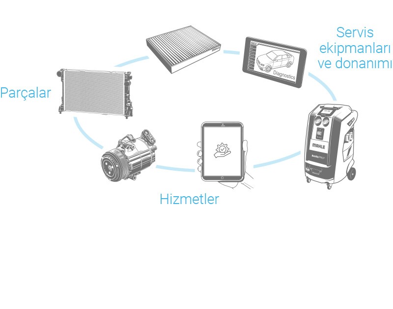 Yedek parça piyasası bileşenlerinden, servis ekipmanları ve donanımından ve ek hizmetlerden oluşan benzersiz kombinasyonumuz, araç servisleri için eksiksiz çözümler yaratır ve değer zincirinin her alanına değer katar.